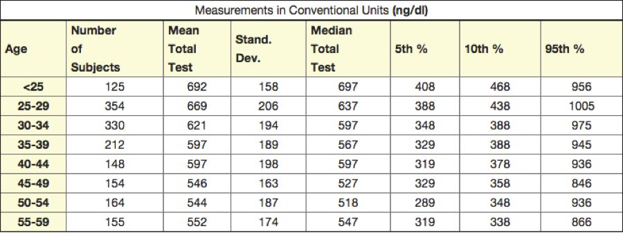 For reference, I'm 25 and ''normal'' is supposed to be 692 ng/dL, I'm at 1,114 ng/dL. You don't have to settle for ''average'' when you can go optimal, regardless of your age.